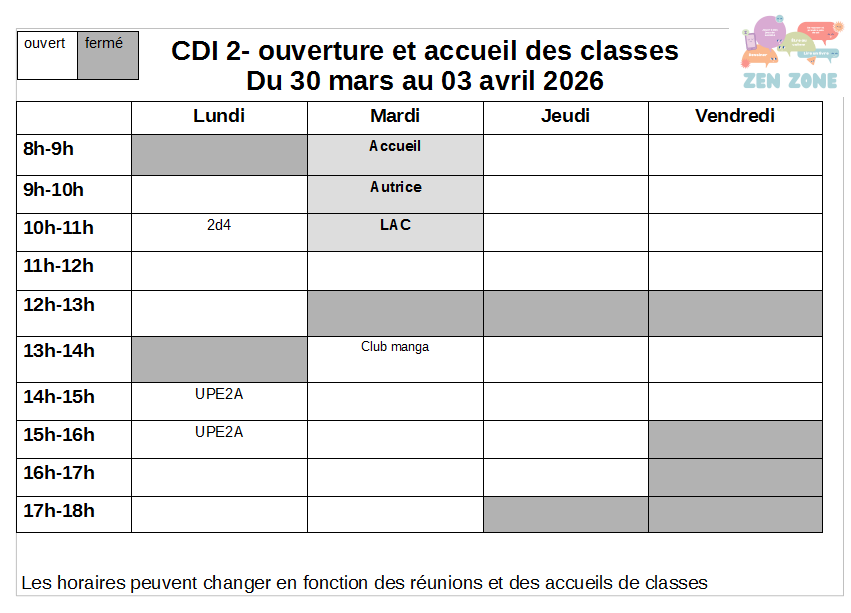 Planning CDI du 30 mars au 03 avril 2026